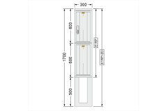 Rozmery: šírka 300 mm, výška 1 700 mm, hĺbka 245 mm. Vonkajší kryt piliera má výšku 600 mm.