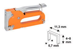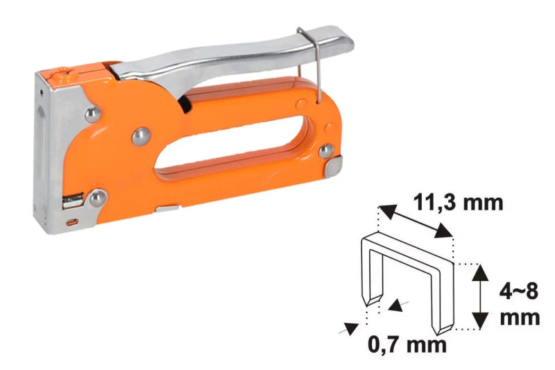 Zošívačka na čalúnenie, tzv. "taker", je nástroj, pomocou ktorého môžete ľahko upevniť všetky druhy fólií, textílií alebo iných materiálov. Robustná celokovovákonštrukcia zaručuje trvanlivosť a odolnosť voči mechanickému poškodeniu. Zošívačka je určená na prácu so sponkami s dĺžkou 4až 8 mm, typ D53.