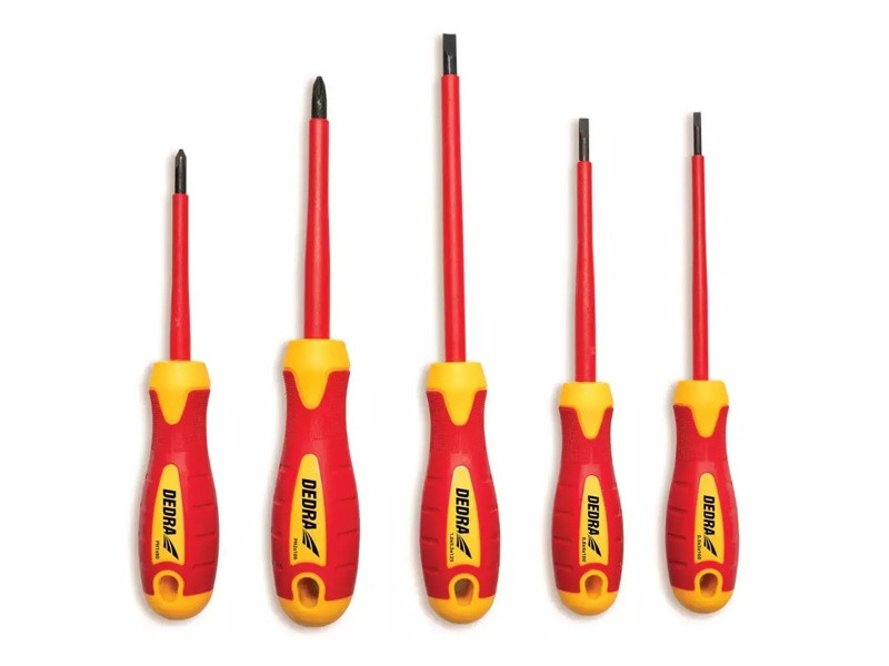 Oceľ S2, rukoväť z dvoch materiálov TPR, magnetické hroty. Skrutkovače sú súčasťou balenia: -SL: 3x100 mm, 4x100 mm, 5,5x125 mm; -PH: 1x80 mm, 2x100 mm