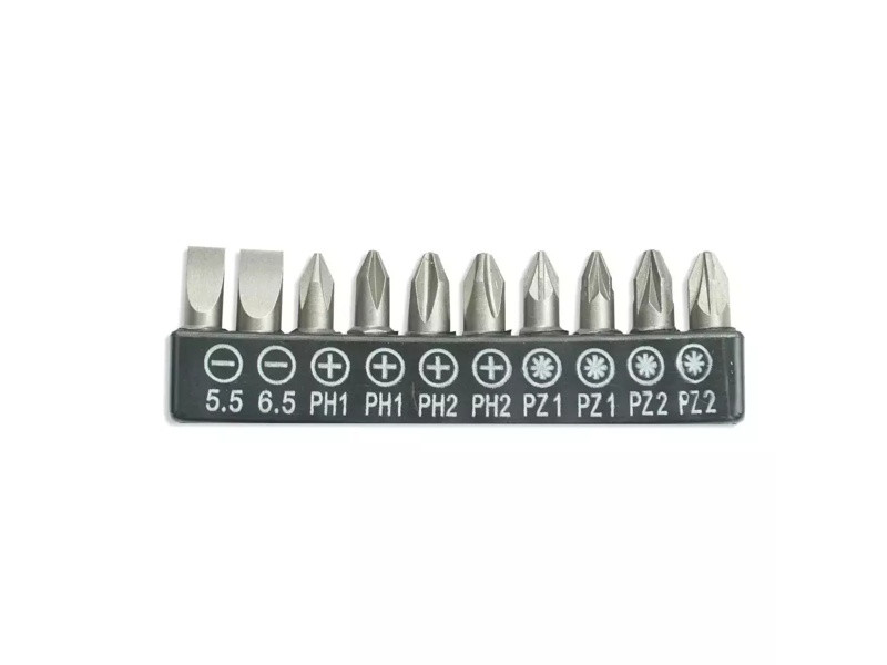 Súprava skrutkových bitov 10ks,25mm:SL5.5,6.5,PH1/2×2,PZ1/2×2