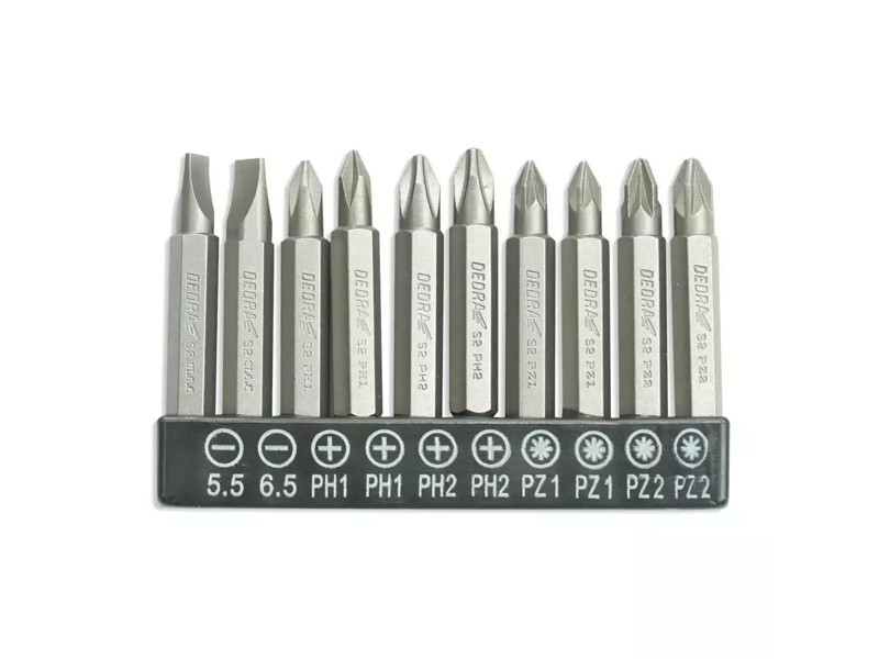 Súprava skrutkových bitov 10ks,50mm: SL5.5,6.5,PH1/2×2,PZ1/2×2