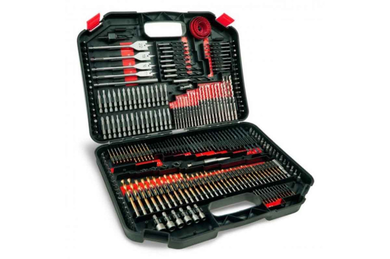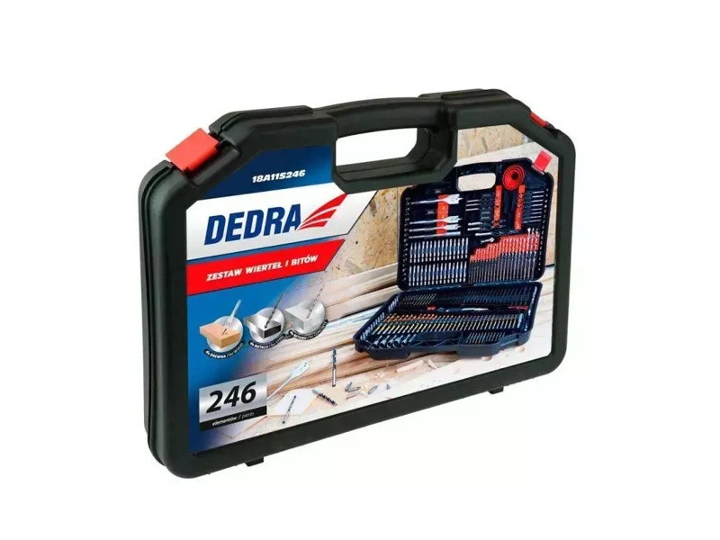 Sada 246 prvkov, vrátane: vrtáky do dreva, kovu, betónu, dierovacie píly, záhlbníky a nástavce. Celé je to zabalené v šikovnom plastovom kufríku, vďaka ktorému môžete mať najdôležitejšie náradie pre prácu vždy po ruke.