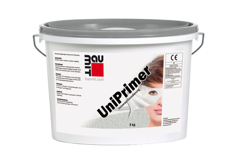 Penetračný náter Baumit UniPrimer nanášajte na podklad valčekom alebo štetcom a to rovnomerne bez prerušenia. V prípade potreby napr. pri veľmi teplom počasí je možné pridať max. 5 % vody (max. 1 l vody/ 25 kg vedro). V prípade, že sa na podklade vyskytujú mikrovlásočnicové trhliny, použite špeciálny penetračný náter obohatený vláknami Baumit FillPrimer.
