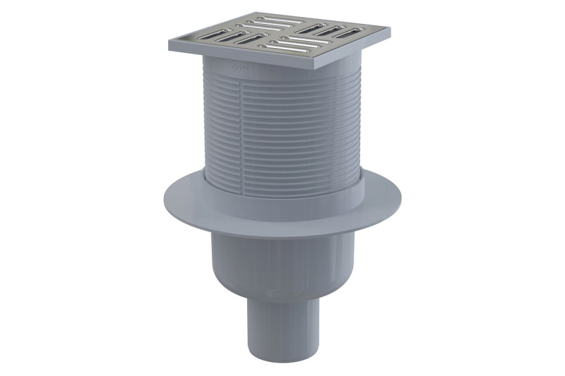 Vpusť podlahová 105×105/50 mm priama, mriežka nerez, vodná zápachová uzávera