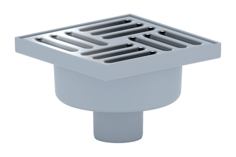 Vpusť bočná DN110 nerezová mriežka 150×150 / vodný protipachový uzáver