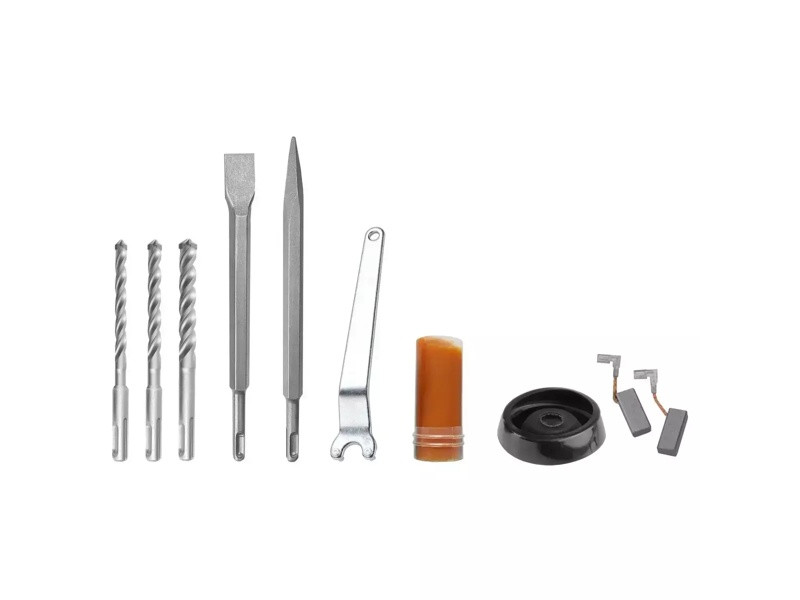 Príkon: 1250 W; kladivo: 4,5 J; otáčky: 0-870 ot/min; príklep: 0-4100/min; skľučovadlo SDS+; 4 prevádzkové režimy; obsahuje: krompáč/ploché dláto/3 vrtáky do betónu/samorezné vrtáky/nádobu na mazivo/kufor