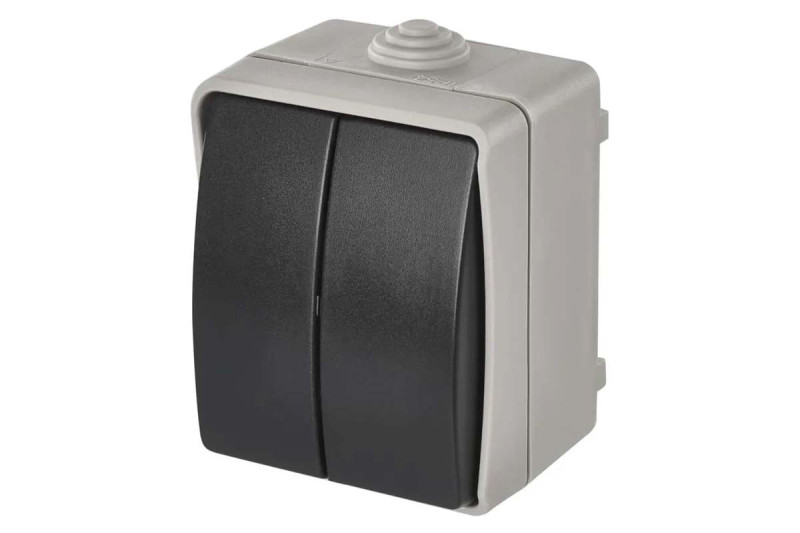 Vypínač nástenný IP54 č.5, 2-tlačidlový šedo-čierny FRENCH