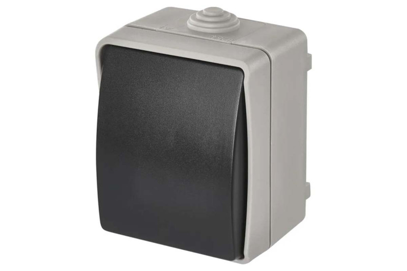 Vypínač nástenný IP54 č.7, krížový šedo-čierny FRENCH
