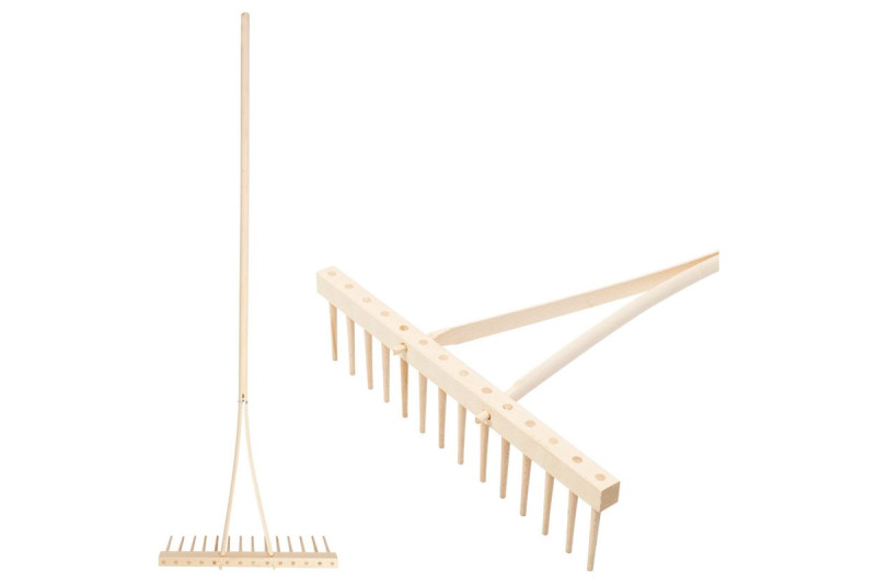 Záhradné drevené hrable 14-zubové s násadou