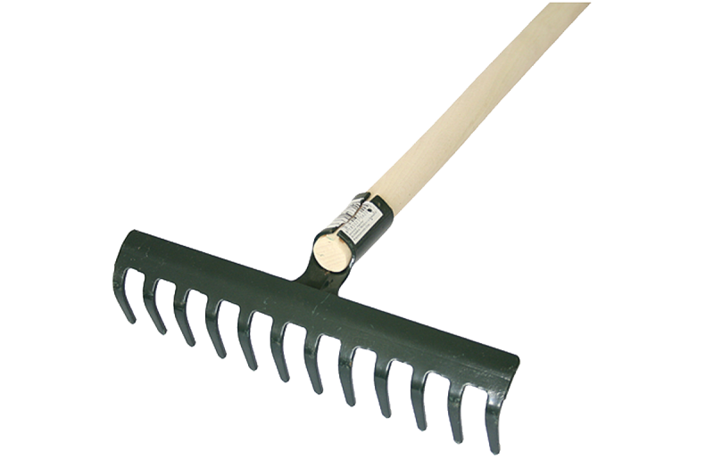 Záhradné kovové hrable 12-zubové s násadou