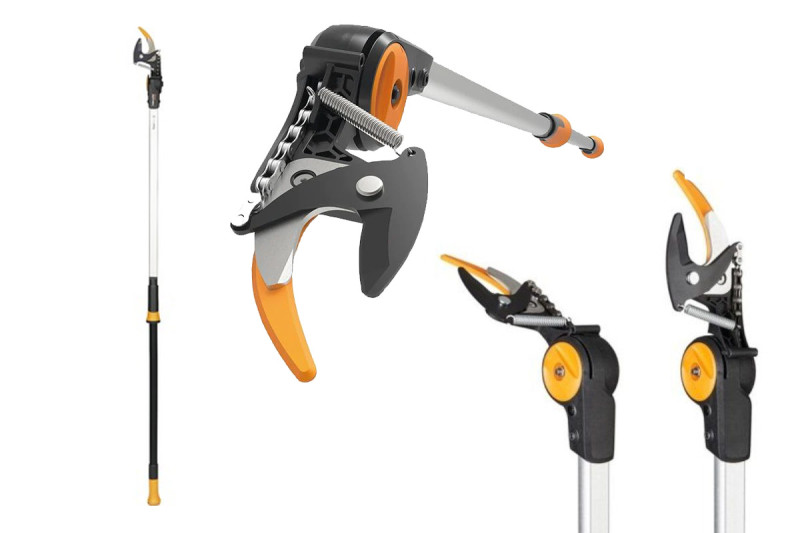 Nastaviteľná hlava nožníc a jednoduchý strižný mechanizmus zaisťujú rýchle a bezpečné strihanie vetiev z veľkej vzdialenosti.