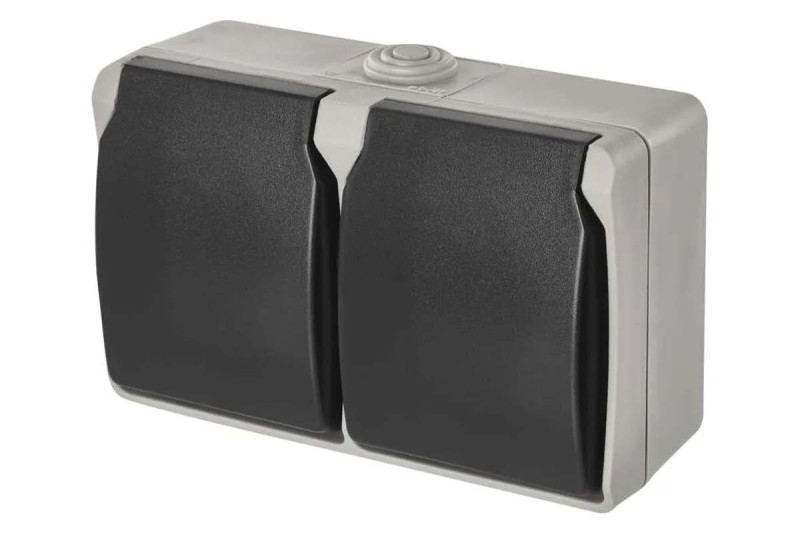 Zásuvka nástenná dvojnásobná IP44 šedo-čierna FRENCH
