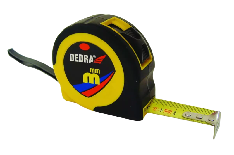 Odmerka určená na meranie. Užitočné doma, v garáži alebo na stavbe. Puzdro na meranie je vyrobené z ľahkého a odolného plastu dodatočne potiahnutého gumou. Puzdro má tlačidlo automatického uzamknutia miery a praktickú sponu na opasok.